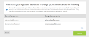 - In the next step, you would need to update your nameservers to the custom nameservers of the CloudFlare. This should be done at your registrar. If you are uncertain as to where and how you should update the nameservers, contact your registrar. Nameserver changes can take up to 24 hours to reflect, so be patient while you are at it.