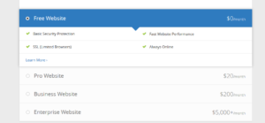 - The next step would be choosing your plan. You can opt for the ‘Free’ plan to try out things first. You can also choose from other options like ‘Pro Website’ at a cost of $20/month, or the ‘Business Website’ at a price of $200/month.